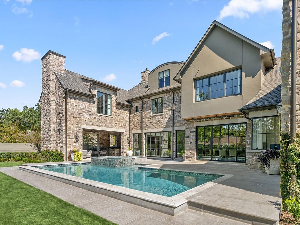 Impeccably designed by Robert Dame & the Owen Group Interiors, this Transitional French Normandy estate blends timeless architecture with modern sophistication. Upon entry, you’re flanked by a handsome library and an elegant dining room with adjoining wet bar and wine display. Refined interiors feature smooth plaster walls, wide-plank hardwoods, custom wallpaper, designer lighting, and reclaimed wood ceiling beams. The chef’s kitchen offers top-tier appliances and a spacious scullery, opening to the great room defined by architectural detailing, natural light, and seamless indoor-outdoor flow. Steel-framed doors reveal the covered loggia with outdoor kitchen, fireplace, and resort-style pool. The serene primary suite includes a spa-like bath and dual closets. Additional highlights include a home gym, two staircases, and exceptional craftsmanship throughout—an extraordinary blend of pedigree, design, and livability.
