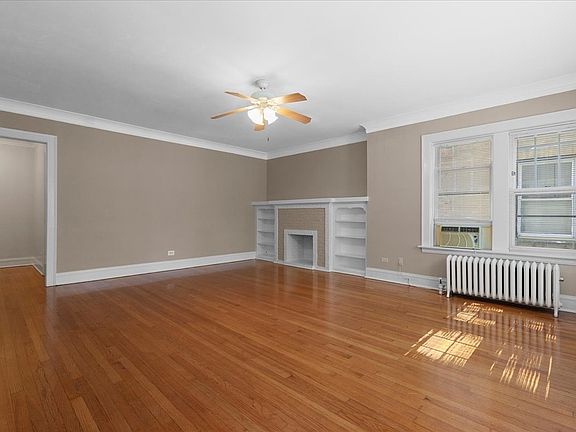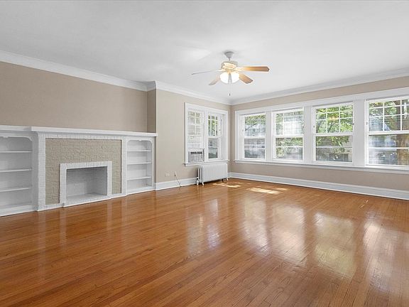 This spacious 2.5-bedroom plus den, 1-bath apartment is located on a tree-lined street in the heart of Evanston. There are six rooms in total, approximately 1800 square feet, and the unit is very well maintained. Features include a new kitchen with new appliances, a dishwasher and pantry, a separate large formal dining room, and a living room with a decorative fireplace and built-in bookshelves. The nicely-sized bedrooms share a tiled bathroom with a tub, and there is a full laundry room on-site. The unit offers plenty of storage space and radiator heating. Water and heat are included in the rent. The building has a fenced-in backyard that provides added privacy. An indoor garage parking spot is offered for $150/month, with additional street parking also available. No dogs. A maximum of 1-2 cats is allowed, and they must be spayed or neutered. The Purple Line is about a 10-minute walk, and both Target and Jewel-Osco are less than a 10-minute drive away. 700+ Credit Minimum and 3X Gross Income to Rent