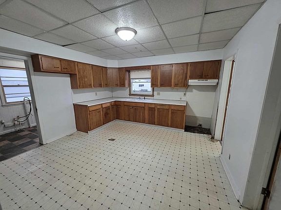 This 4 bedroom residence features a 2 car garage and is available for immediate occupancy at a competitive price. The property boasts potential for renovation, with a spacious bathroom and eat-in kitchen. Additional features include a full basement with shelved storage space and a recently repainted main level. A 10x10 storage shed is situated adjacent to the garage, with convenient alley access and large back yard. The list price is lower than the 2025 appraised value of $126,000.