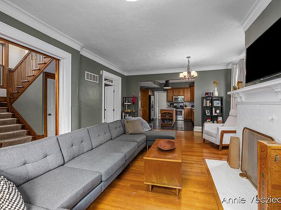 Step inside to tall ceilings, hardwood floors, and a bright, open layout filled with natural light. The stylish kitchen features modern cabinetry, stainless-steel appliances, and plenty of counter space, perfect for cooking and entertaining. A flexible main-floor room offers options for a home office, playroom, or guest space. Upstairs, you'll find four spacious bedrooms and a fully updated bath with timeless finishes. Major updates completed in 2012 include plumbing, electrical, roof, and furnace, providing peace of mind and lasting value for years to come.