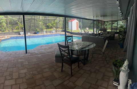 3 bedroom 2 bathroom gorgeous updated home with a bonus office room. Salt water pool and basketball court located 5 mins from i-4 , hospitals, mall, restaurants and only 20 to 30 mins from disney and universal parks. Very private with a big yard. Water is included. House will be available first week of October. Pet friendly Renters are responsible for electricity, internet and pool maintenance. Lawn maintenance is included in the rent as well as the water.