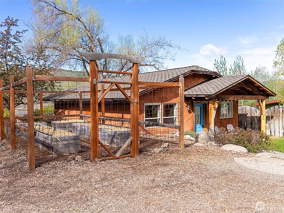 WINTHROP ARTISAN CABIN - Perfectly laid out smaller 2bd/1 bath home with comfortable floorplan, custom aesthetic finishes & low maintenance requirements inside & out. Colored concrete floors, maple & wood slab counters, newly installed mini-splits for heating and cooling, new architectural shingle composite roof & blue pine custom doors are just a few of the features in this efficient &bright home. The private covered front and back porches, & mature landscaping create a serene outdoor living space to unwind. Built-in storage shed for outdoor gear & toys. Enjoy the convenience of being close to everything—only minutes to the Nordic trailhead, the Meadowlark Trail & downtown Winthrop.