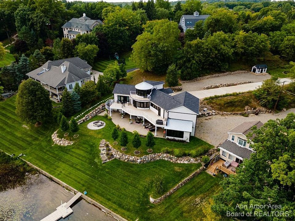 Welcome to this one-of-a-kind lakefront retreat! This stunning 5,000+ sq ft custom ranch home boasts 120' of frontage and incredible panoramic views of Lake Cavanaugh, giving you plenty of room for entertaining and living your best life. The main level features a gourmet kitchen w/custom Amish built cabinets, quartz counters, Sub-Zero fridge/freezer, Thermador 6 burner gas stove and double ovens - perfect for any chef. A formal dining rm along w/an Azek deck (w/gas line for grill) that runs the length of the home gives you options for hosting inspiring dinner parties. Enjoy relaxing by the gas fireplace in the main living room or retreat to your entry level primary ensuite. The quiet office/cupola on the third floor is great for work, reflection, & inspiration! The walkout LL includes two bedrooms/baths plus a full kitchen complete with family rm, whiskey shed'' w/gas fireplace, man cave, & 2nd laundry- ideal for overnight guests & containing lake life. Two separate driveways lead to two garages offering convenience with a heated thawing system for both the driveway and porch. Don't miss out on this once in a lifetime chance with this distinctively designed and built Lake Cavanaugh property! See feature sheet for add'l details!, Primary Bath
