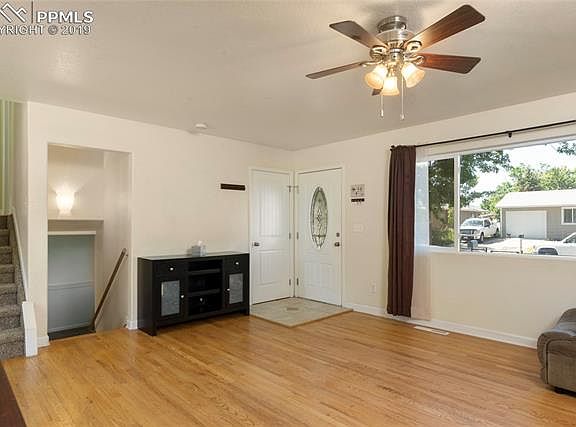 Welcome home to this beautiful home*There are hardwood floors throughout the living room and the upper bedrooms*Ceramic tile floors at the entry and bathrooms*Some fresh paint along with newer windows*The yard is fully fenced and waiting for your landscape ideas*There is a garden area in place with berry bushes*A fire pit to warm up by*All appliances are included*Two full baths*A family room to relax*A window air conditioner & ceiling fan to help cool you on those hot Colorado days* Plenty of off street parking* On the main level the kitchen has a pass thru to the living room. There is a walkout to the back yard from the dining room. . The secondary bedroom is large enough to accommodate a queen bed. Bedroom number 3 is off the family and adjoins a full bath.Home is a great location to I-25, Highway 24, downtown and Fort Carson. The back yard is fully fenced with a fire pit and awaiting your landscaping ideas.