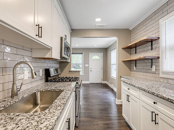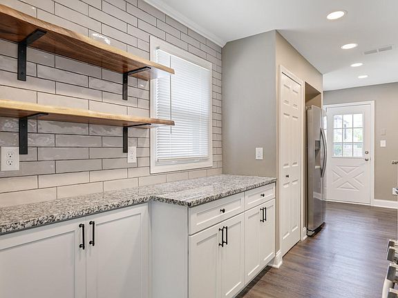 Large fully fenced yardGran-perla granite countertopsFresh carpetingBrand-new kitchenSleek stainless steel appliancesKraftmaid white shaker cabinetsBeautiful tile backsplash