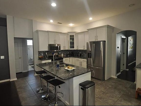 Must see! Dark wood laminate in living spaces, new carpet in all the bedrooms, and gas hot water heater. Kitchen is open and gorgeous with white shaker cabinets, level 3 custom granite counters, stainless appliances, and even a separate wine bar with built in cooler! The kitchen flows into the living room making it perfect for big family gatherings. This house features a 3-way split bedroom floorplan that's great for entertaining and makes the home seems even larger than it is. The large master bedroom is separate from the other bedrooms and has large his and hers walk-in closets, an oversized en-suite bathroom featuring walk-in shower, separate garden tub, and dual vanities. Outside is a great screened patio, fully fenced yard and a paver patio & fire pit plenty of space and perfect for entertaining! This home is located in an A+ school district. Lawn care included in the rental price. Tenant is responsible for all utilities. Tenant must provide their own renters insurance. Small dogs allowed $500 deposit. No cats allowed. ONE year lease or TWO year lease available. We require first month rent, last month rent, and security deposit. Available February 2023.