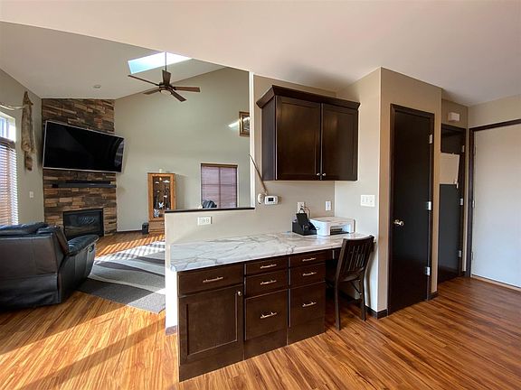 Attractive 2-story zero lot with an incredibly open floor plan featuring open ceilings to second level. Great amount of natural light with skylights in the living room. Distinctive stone to ceiling gas fireplace. 3 bedrooms on the second level. Master bedroom has private bathroom & walk-in closet. Nice kitchen with flush breakfast bar, desk & pantry, dining area with access to deck. Unfinished lower level. Included is washer/dryer, all blinds, and whole house humidifier. Backs up to a City Park!
