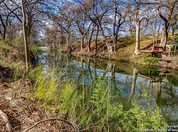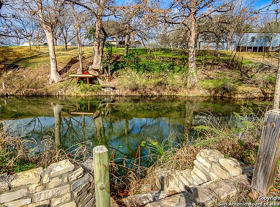 Stunning Single story waterfront home in the beautiful historic city of Castroville. Full gourmet kitchen with custom cabinets, granite countertops and SS appl. Great place for entertaining on the beautiful covered patio overlooking Medina River. Stairway down to river bank,, own approx 90 ft of river frontage. Gorgeous Cantera fireplace! Lots of closet storage. Home shows beautifully.