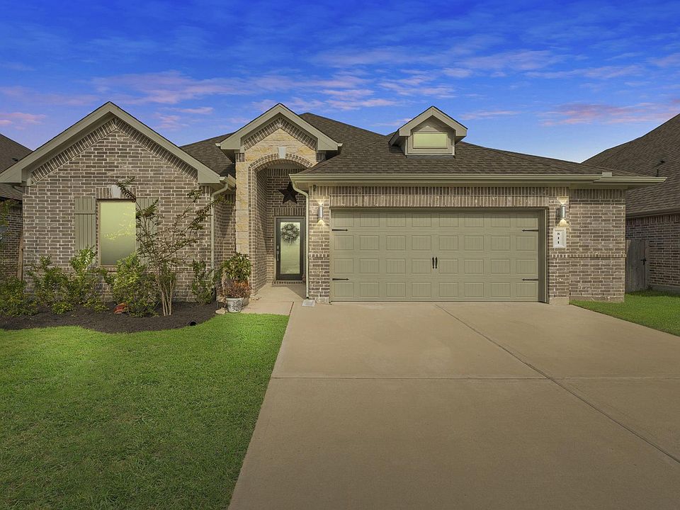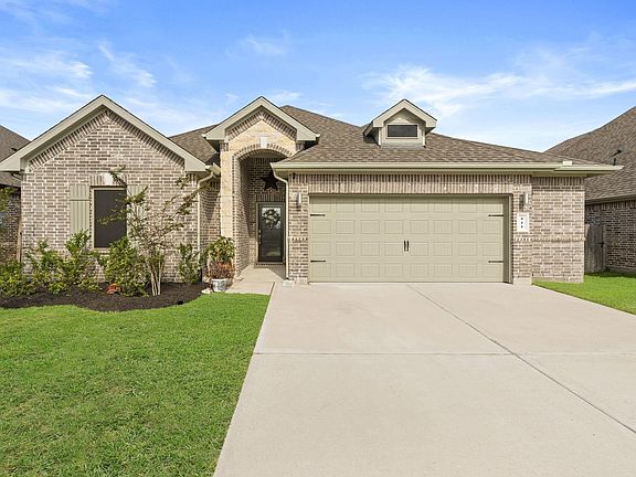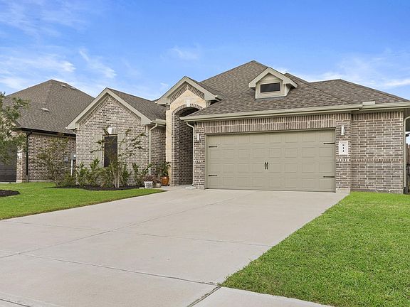 Built in 2023, this modern single-story home in Westwood offers 3 bedrooms, 2 baths, and an open layout designed for comfort and efficiency. Smart home features include keyless entry, smart thermostat, and smart switches to control lighting throughout. The kitchen offers quartz countertops, stainless steel appliances, and a large island open to the family room. Energy-efficient upgrades include a tankless water heater, double-pane windows, and a high-efficiency HVAC system. The flexible floor plan includes a room that can serve as an office, playroom, or 4th bedroom. The primary suite features a walk-in shower, soaking tub, and spacious closet. Enjoy the covered patio and convenient access to I-45, shopping, dining, and all that League City living has to offer. Zoned to Clear Creek ISD.