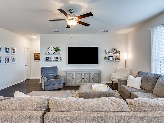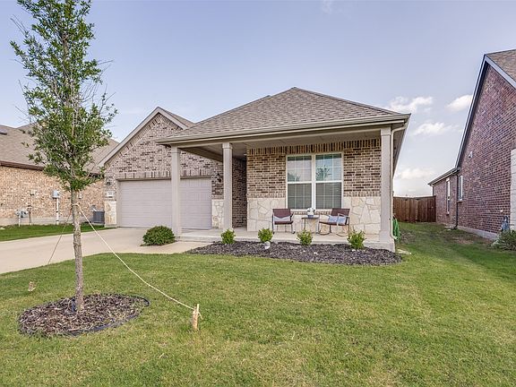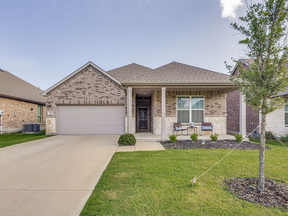 Welcome to this beautifully maintained 3-bedroom, 2-bath home perfectly situated in a friendly Anna neighborhood close to shopping, schools, and local amenities. Step inside to find an inviting open layout filled with natural light from abundant windows and stunning dark hardwood floors that flow throughout the main living spaces. The kitchen is both stylish and functional, featuring white cabinetry, sleek granite countertops, and plenty of storage space—ideal for meal prep or entertaining. The spacious primary suite offers comfort and privacy, while additional bedrooms provide flexibility for family, guests, or a home office. Enjoy outdoor living year-round with a covered front porch and a covered back patio, perfect for morning coffee or relaxing evenings. Additional highlights include ample storage closets, gutters, and a convenient location just minutes from dining, shopping, and commuter routes. This home combines comfort, style, and convenience—ready for you to move in and make it your own!