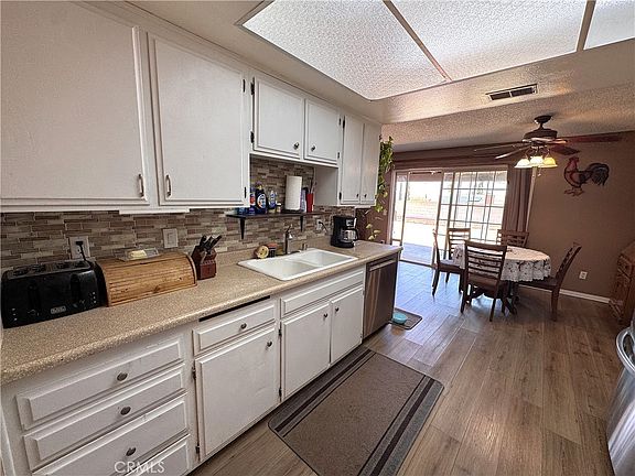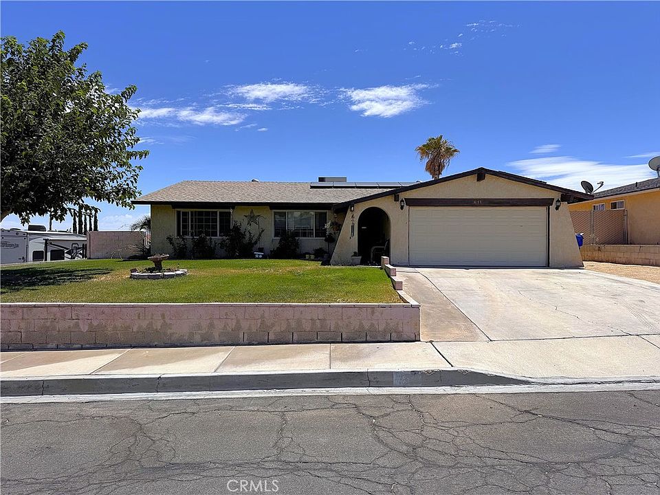 PRICE ADJUSTMENT!!! This beautifully maintained four-bedroom, two-bath home in Barstow offers a desirable floor plan with the living area at the heart of the home, three bedrooms on one side, and the private primary en-suite on the other. A bonus front living room provides extra space for a home office, playroom, or formal sitting area. The home features wonderful curb appeal with lush green landscaping that brings a refreshing touch to the desert. Recent updates include the roof, flooring, exterior paint, and stainless steel appliances. An upgraded electrical panel adds peace of mind, while central heating and cooling, along with 28 solar panels, help manage utility costs. A copy of the current electric bill can be provided. The fenced backyard is ideal for relaxing and entertaining, with a covered patio, barbecue area, and mountain views. A storage shed provides extra space for tools or seasonal items. This neighborhood has retained its desirability through the years with an active Neighborhood Watch and close proximity to schools, shopping, and dining. Convenient freeway access to both the I-15 and I-40 makes commuting a breeze. It’s less than a minute from the well-known Stater Bros. grocery store, about five minutes from Super Walmart, and a short drive to MCLB and Fort Irwin.