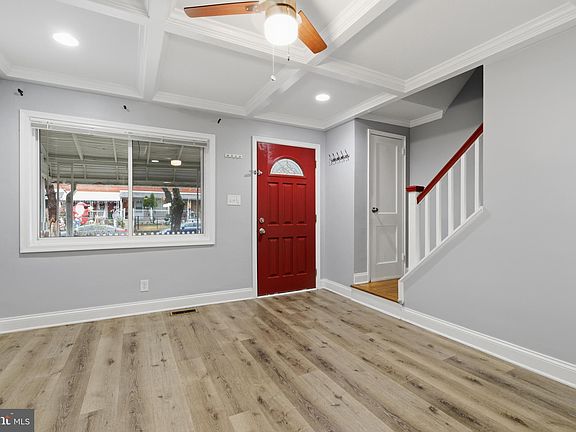 Step into this stylishly updated home, where modern design meets everyday comfort. The open-concept main level welcomes you with warm luxury plank flooring, fresh designer paint, recessed lighting, and elegant coffered ceilings, creating an upscale yet inviting atmosphere. The bold red entry door adds a touch of personality, setting the tone for the home's contemporary charm. Enjoy a spacious living and dining area perfect for relaxing or entertaining, along with a beautifully upgraded kitchen featuring white shaker cabinets, granite countertops, stainless steel appliances, and pendant lighting. A convenient main-level half bath and large windows fill the space with natural light. The finished basement offers incredible bonus living space, complete with a private room, a comfortable living area, and a modern full bathroom ideal for guests, a home office, or a personal retreat. Upstairs and downstairs, every room feels fresh, comfortable, and thoughtfully updated. Located in a highly convenient area, this home is just minutes from shopping centers, grocery stores, restaurants, parks, and public transportation, making daily errands and commuting effortless. This chic, move-in-ready home blends comfort, style, and a prime location offering everything you need to enjoy easy, modern living.