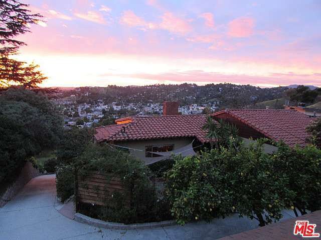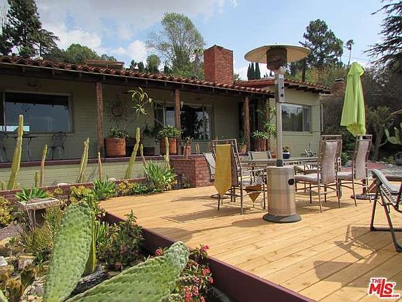 This Spanish ranch-style home with tile roof sits on 2 lots on a Montecito Heights hilltop! The main house has an abundance of large windows and corner windows providing views to the surrounding hillsides and succulent garden. The home is surrounded by a large wood deck, fountain with pond, fire pit, and patio with pergola, all providing additional areas for entertaining. It has been beautifully renovated withhand carved posts, custom cabinetry, and appliances. Hard wood floors are laid on an angle throughout. Bathrooms are custom tiled, with a raised Jacuzzi tub in the guest bathroom and a double shower in the master! A separate structure houses a garage, music or art studio, and a workshop. The home comes with TV mounted above fireplace, Alarm system, and appliances.The community is adjacent to Ernest Debs Park. This home is ready to move in and the owner can close escrow as soon as needed by buyer.