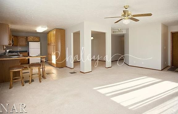 Check out this 3 bedroom 2 bath ranch with a fresh new look. Above ground pool has been removed - giving you a bigger yard for outdoor entertaining! Newly painted interior with neutral colors, carpets cleaned, new range, updated hardware and refinished kitchen countertops modernize this home. Large kitchen has lots of cabinets, snackbar, and pantry with roll-outs. Oversized garage includes workbench. Yard is fenced and includes deck in rear overlooking newly seeded back yard. Furnace and AC new in 2008. All on one level - great starter home - easy maintenance.