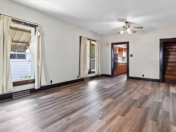 This is your chance to get a three bedroom, move in ready home for under $100,000. This three bedroom and one bath home with inviting enclosed front porch has plenty of space and a two car detached garage. Enjoy a spacious great room, a separate dining area, and a kitchen with included appliances. The bedrooms are generously sized. Situated on a large lot, this home is conveniently located near shopping, schools, and more. The property can be entered from the front street or the alley at the rear, with direct access to the large two car garage.