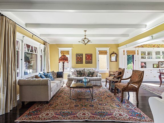 Gorgeous 1909 Craftsman which has been meticulously restored in the heart of Silver Lake. Beyond the hedges and relaxing front porch, enter through the original front door to an open floor plan with magnificent views, elegance, natural light, character built-ins, beamed ceilings and privacy. Pocket doors unveil a spacious sitting room complete with tin ceiling and speak-easy bar area. The large living room and stunning dining room overlooks the grassy yard and spectacular views. The kitchen features a fully stocked chef's dream boasting custom emerald colored cabinetry, microwave, toaster oven, dishwasher, coffee maker, country sink, European gas range and plenty of storage and prep area to create a gourmet meal. Upstairs, find three bedrooms, an office/daybed room with closet, an en-suite rose toned bedroom with queen bed and views of the historic neighborhood, and the primary bedroom featuring a luxurious king bed and sitting area with views to Century City plus an en-suite bath. The large grassy backyard with citrus trees is fully enclosed. Beautiful hardwood floors throughout and designer tile in kitchen and baths. Situated in the heart of Silverlake steps from shops, popular eateries Silverlake Ramen, All Day Baby, L&E Oyster, all of the excitement on Sunset Blvd and the Reservoir.