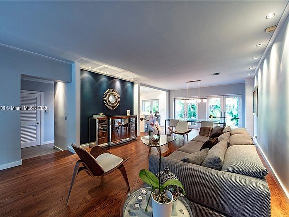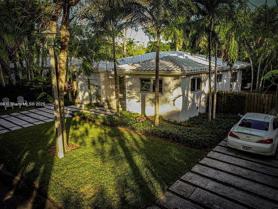 This may be the coolest updated mid-century modern home for rent in the "MiMo District!" Meticulous modern updates create a fantastic feel, with a fabulous indoor-outdoor open flow plan: a spacious great room with hardwood floors; extra hideaway media den; bright dining; and open designer kitchen, all opening through French doors to an expansive theatre-style rear patio deck overlooking the lush gardens. Great features: two spacious bedrooms and mega double-ensuite bath; modern kitchen; designer baths; guest powder room; impact windows-doors; and a welcoming front porch. All in a fantastic Historic Bayside-MiMo District location on a large 7500 SF lot with plenty of parking for residents and guests, just blocks to Baywood Park, restaurants and shops. This house is a must see!