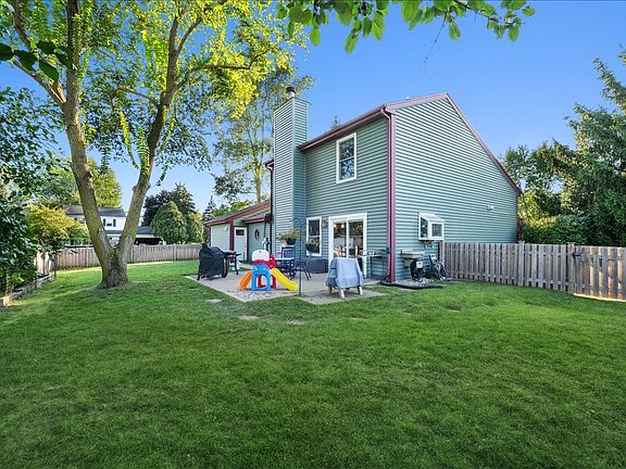 Welcome home! This cute as a button home in Fox River Shores is now available! This property boasts 3 bedrooms and 2 bathrooms. The moment you step into the home you will be greeted with soaring ceilings in the living room, a first floor bedroom, an open concept kitchen with newer stainless steel appliances and a walk-in pantry! The kitchen flows beautifully into the dining room which features a cozy fireplace! Let's not forget to mention the practical mudroom located off the oversized partially heated 2.5-car garage. Once on the second floor, you will find two additional bedrooms, the second bathroom, plus the conveniently located 2nd level renovated laundry closet with newer washer and dryer. Situated on a large corner lot, this property offers plenty of outdoor space for entertaining. The sprawling backyard features a shed, mature landscaping and a newer wooden fence (summer 2023). Additional recent updates to this property include: front porch posts redone with brand new stonework (September 2025), light fixtures in kitchen and foyer (2025), kitchen appliances (2022), water heater (2024), 3 new fire-rated doors to the mudroom, garage and backyard (2025), new carpet (2020 & 2025), 1st floor bathroom refresh (2024), 2nd floor bathroom flooring (2024) and toilet (2025), laundry area remodel with 'smart' LG washer & dryer (2024), neutral paint throughout (2023), blinds throughout (2020). Don't miss your opportunity to call this lovely property 'home'!