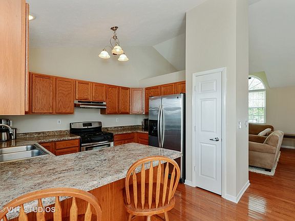 Cute 3 bedroom ~ 3 full bath ~ Quad level home with finished lower level. Main level features vaulted ceilings, hardwood floors, living room with gas start, wood burning, fireplace and large window allowing for lots of natural light. The kitchen offers a breakfast bar, stainless steel refrigerator & stove, pantry closet and eating area with sliding glass door to the patio. Upstairs you will find a master bedroom with full master bath, two additional bedrooms and full hall bath. Beautifully finished (2016) lower level with wood laminate flooring and recessed lighting provides a spacious family room/recreational room with a built in bar ~ perfect for entertaining!! Plus there's an additional full bath with ceramic floor, pedestal sink and shower! Laundry area with utility sink and ample storage space located in the sub basement. 2 car attached garage and large backyard with patio and fire pit. Come see this great home that is neutrally decorated and ready for new owners!