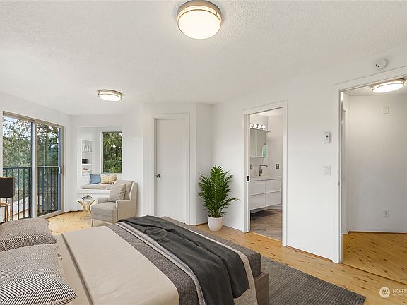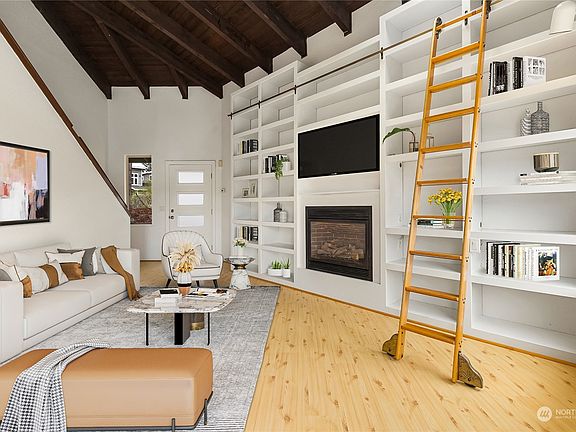 Beautiful private custom newly renovated home perched on a wooded knoll in the popular Silver Beach lakeside community. Located at end of private lane and just a short walk to the lake, Whatcom Falls Park, Big Rock arboretum, Silver Beach Elementary. Features 350 sq. feet of wrap-around decks taking advantage of gorgeous territory and lake views. Huge vaulted ceilings in the living room with floor to ceiling built-in bookshelves. Brand new kitchen. Must see primary bedroom with window seat, walk-in closet and fully remodeled bath. Vacation home feel just minutes to Barkley Village. What a wonderful place to make your home.