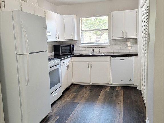Super cute and cozy, 2 bed, 1 bath home on 1/4 acre lot, conveniently located a few blocks from the Tejas Center, which includes HEB, Starbucks, and shopping. Open floor plan with recently updated flooring throughout, freshly painted interior and exterior, ceiling fans, and a new roof in 2023! Enjoy your evenings out on the patio shaded with large trees! Also located in the fully fenced backyard is a multi-purpose storage building where you can create your own she shed, man cave, or party room! This home even includes a washer, dryer, and refrigerator. Schedule your showing today!