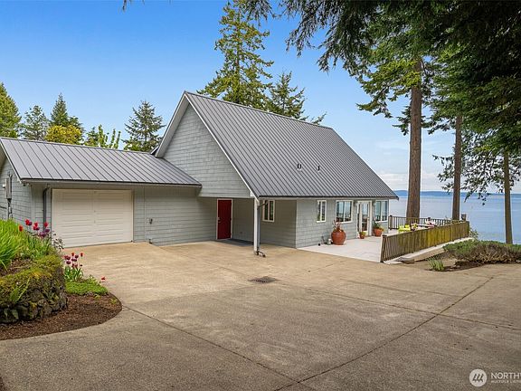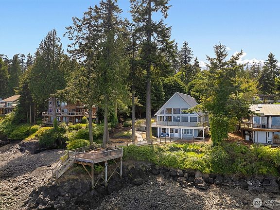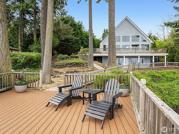 Nestled above approx 100' of waterfront, among fir trees & eagle’s nests, sits this lovely home w/ sweeping views of the Sound, shipping lanes, Mt Baker & N Cascades. Wide open living spaces, high ceilings, expansive windows take advantage of views from every room. Gathering is a central theme, inside & out. Inside, a beautiful kitchen is the hub. Outside, the large upper deck keeps the good times rolling. The lower deck is a serene spot to be close to nature & the water’s edge. Versatility of space ensures your needs are met; the loft, lower level with 2nd kitchen & living areas, ideal for guests, a live-in caretaker, or rental income. System updates provide peace of mind; mini-split, heat pump, hardwired generator, water storage and more.