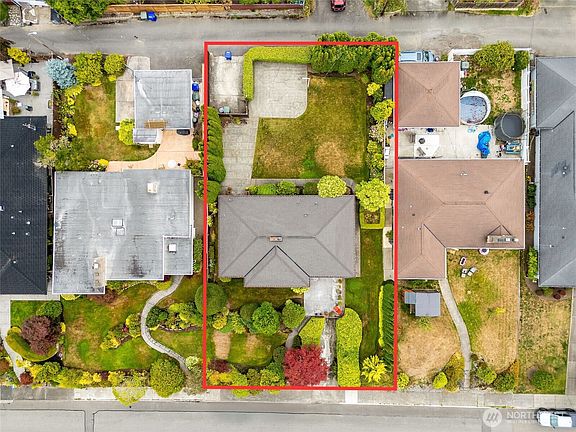 Timeless brick mid-century rambler on a generous level lot. Built in 1951, this home offers over 3,000 square feet of living space, including a full basement. The foyer welcomes you with hardwood floors and opens to a spacious living room. The kitchen flows into the formal dining room and looks out over the backyard, complete with a basketball court. The main level features three bedrooms and a full bathroom and the basement has 2 bedrooms and a 3/4 bathroom. The expansive rec room provides the perfect spot for movie nights and playing games. A smart layout includes garage access from Rucker Avenue and additional parking from the alley. Ideally located in north Everett, just blocks from the pedestrian bridge to Waterfront Place.