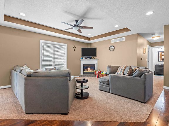 Room to roam! Beautiful four bedroom, three bath home on the edge of town. You will love the open floor plan on the main floor. The living room is very spacious with a tray ceiling. The kitchen features bright white cabinetry, solid surface countertops and an awesome island. The master bedroom includes a private bath with heated tile floor and large walk-in closet. Moving downstairs is a partially finished basement with a fourth bedroom, full bath and plenty of storage. Enjoy beautiful views of the countryside from the large covered patio. This property also features a 40' x 15' shed and two additional smaller sheds for plenty of storage. Beautiful home on a great lot. Schedule your showing today!