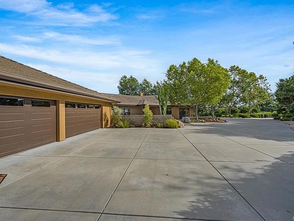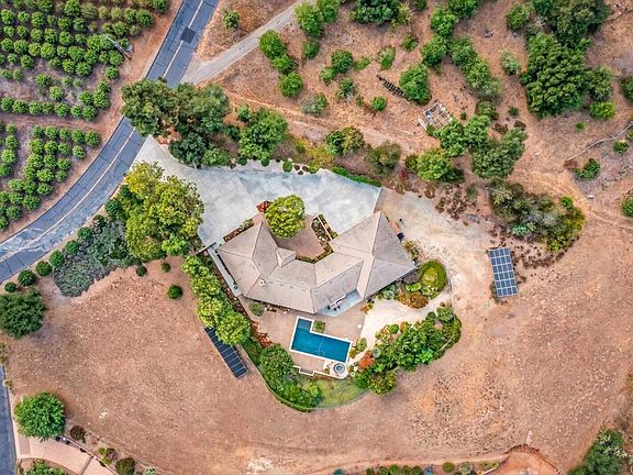 Experience the perfect blend of modern sophistication and serene countryside with this stunning property offering spectacular eastern views. Every room in this home is designed to maximize the breathtaking scenery, combining style with casual elegance. Interior highlights: Open floorplan with vaulted ceilings, maple wood flooring, and an open layout seamlessly connecting the kitchen to the GREAT room, creating an ideal space for entertaining. A very distinctive feature of this home is the roll-up glass door connecting the indoors to the outdoors. Culinary enthusiasts will love the well-appointed kitchen featuring top-of-line appliances, including a sub-Zero refrigerator, 6-burner cooktop, double ovens, custom cabinetry with abundant storage, and granite countertops. The primary suite is a spacious private retreat with direct patio access, a walk-in closet with built-in organization, a luxurious ensuite bathroom boasting two two-sink vanity, a designer-inspired soaking tub, and a separate walk-in shower. The separate wing includes a sizable office/den, two bedrooms, and a full bath. One of the guest bedrooms offers a possible mother-in-law suite with a separate entrance and sitting area. Just off the kitchen, a hall leads to a powder room/bath and another walk-in closet/pantry. The spacious laundry room is conveniently located near the primary suite with tons of storage and a utility sink, steps away from the oversized 3-car garage. The entertainer’s backyard features a pool with a waterfall, spa, covered dining areas, and a stylish outdoor kitchen retreat with BBQ, side cooktop, refrigerator, amble bar seating, & retractable patio cover all set against majestic eastern views. The landscaping is beautifully designed with mature trees for added privacy and drought-resistant plants, enhancing the property’s natural beauty. An additional highlight is PAID SOLAR for added energy savings. This exceptional property offers a unique opportunity, combining modern elegance with the tranquility of the countryside.