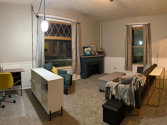 This beautiful home was built in 1885 it has all the charm one would expect with its wrap around porch. This 2nd floor Apartment -unit B has large windows with wonderful views of the giant trees and home's fenced courtyard. This one bedroom, furnished apartment offers a 1,000 sqft and a separate sun room for workouts or art studio. Lots of natural light throughout the unit. The home has a full new refrigerator, stove, and mini microwave, built-ins, and ample storage. The master bedroom has a walk-in closet. Included in rent - water, trash, sewer, and laundry services on site for a fee. Tenants will cover gas, electricity and internet/TV. The apartment is on the 2nd floor with stair entry and walk up.