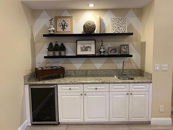 Beautifully updated home in the gated Jacaranda Cove. Three bedrooms, with three en-suite bathrooms, and pool. Completely remodeled from head to toe. Open floor plan boasts vaulted ceilings, plantation shutters, wet bar with wine fridge, cabana bathroom to the pool, and accordion shutters.