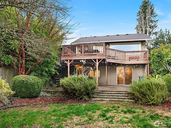 Incredible opportunity to secure a spacious view home at an attractive price point. Gleaming tile floors and a vaulted great room with gas fireplace and dramatic picture windows create a bright, inviting feel. Open kitchen with maple cabinets and ample storage. Large glass slider leads to an entertainment-size deck with sweeping territorial views and stunning sunsets. Lower-level primary suite features walk-out access to a huge patio and backyard plus a 5-piece spa-style bath. Oversized lot extends well beyond the back fence and offers endless outdoor potential for gardening, pets, or future projects. Light-filled spaces throughout. Exceptional access to major highways, transit, and Sea-Tac Airport.
