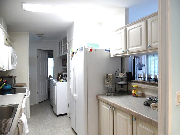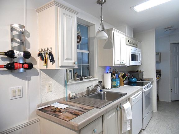 Well maintained and clean as can be, two bedroom, two bath home being sold with nice furnishings. Split floor plan with a bath and bedroom on each side of house, makes it great when you have company. Laminate flooring throughout home. Comes with all appliances, including washer and dryer. Nice lanai on rear of home with windows, shades, tile flooring and small patio area. Has outside electric charging station. Many more upgrades. Single car driveway, carport and shed. This home is priced to sell and will not last long. Call or come by to take a look at this adorable home and make it yours today! You will not be disappointed!