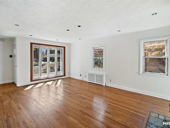 Charming home on the quiet North end of Summit Ave! Enter from the semi-covered front patio, perfect for enjoying morning coffee, into the sun drenched living room with wood burning fireplace (as-is), hardwood floors and nearly floor to ceiling windows. The spacious eat-in kitchen boasts ample cabinet and counter space and a lovely breakfast area. The first floor additionally offers two good sized bedrooms and a full bathroom. Large third bedroom on second floor. The basement is high and dry and partially finished with a full bathroom and fam rm. Long driveway plus attached one car garage, 200 amp electric, newer roof. Great location close to Bergen Town Centre, express NYC transportation, highways and steps from Staib park. Estate sale, being sold as-is.