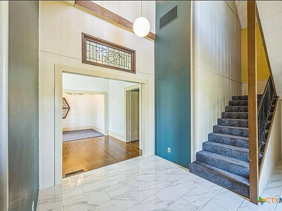 This beautifully preserved 1900 home in the heart of Cuero offers over 4,600 square feet of living space on a generous half-acre lot. Seller Financing and leasing options available! Featuring 5 spacious bedrooms and 4 full bathrooms, the residence seamlessly blends historic charm with modern amenities. Inside, you'll find expansive living areas adorned with natural woodwork, built-in bookcases, and elegant chandeliers. The gourmet kitchen is equipped with a gas range, dishwasher, refrigerator, plenty of storage and huge windows bringing in an abundance of natural light. The main-level primary suite boasts dual closets, while additional bedrooms provide ample space for family and guests. A wet bar, multiple heating and cooling units, and a dedicated laundry room enhance daily living. Outside, enjoy the Texas evenings on the balcony, gather around the fire pit, or relax in the spacious backyard, which includes a dog run. With a carport and attached shed, there's plenty of room for parking and storage. This home is a rare opportunity to own a piece of Cuero's rich history while enjoying modern comforts. Come see it today!