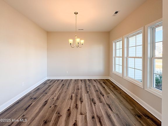 Welcome to Peytons Ridge and the Chicago floor plan by Horizons East. The Chicago features an open concept, bringing a nice airy flow to this home. The first floor has a formal dining room and a high ceilinged living room with a cozy fireplace that opens to the kitchen and a breakfast area. This is a true chef's kitchen complete with an island, pantry, and plenty of cabinet and granite countertop space. This plan also features a first floor primary suite boasting two walk in closets and an en suite bath featuring a 5 foot shower and a dual vanity sink. There is also a secondary bedroom downstairs that connects to a full bath. The large laundry room is downstairs for convenience and includes a lovely drop zone with cubbies and hooks. Upstairs, you will find two more bedrooms and a bonus room that share a third full bath. Whatever your needs, this home offers the versatility! All similar photos and cut sheets are representations only. Builder reserves the right to alter floorplan and specifications. Builder reserves the right to alter floor plan, specifications and features. Similar photos, videos, and cut sheets are for the purpose of floor plan layout only. Similar photos and videos may include upgrades and/or features and selections that are no longer available and may not be included in your specific home. Included features vary from community to community. Buyers or Buyers Agents should confirm included features and selections available with the listing agent and view the included features sheet for the development before presenting an offer. Buyer to verify schools - this address is not available on the Onslow County Schools Transportation site yet.