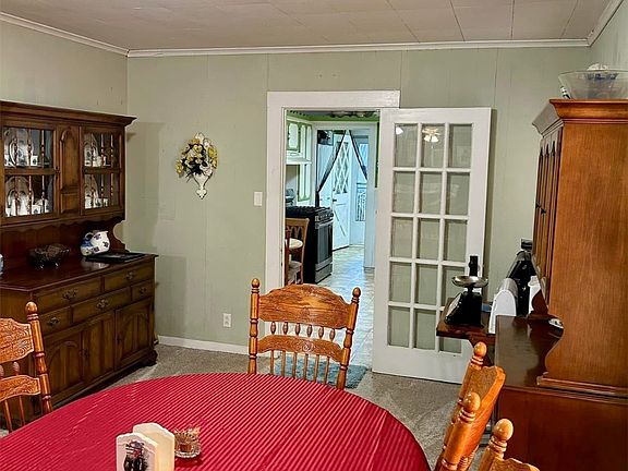 This mid-century home sets charmingly on a corner lot made up of an exterior of white siding and hunter green trim. The back patio off the South side of the home offers a beautiful place to relax in the evenings while the sun sets and a pullout cabana for shade cover when needed. The partially fenced yard creates a lovely outdoor area for the pets. A small shop with electricity provides the perfect tinker area for all the tools, and one storage shed and two insulated trailers provide plenty of extra storage space. The mature paper shell pecan trees are perfect for holiday harvesting, producing over 400 lbs in 2023. The living room offers a beautiful open area on the North side of the home with plenty of natural light that flows simply into the stunning dining area, straight into the absolute cutest kitchen, and then on into the utility room right off the back porch. The East side of the home offers three bedrooms and two full baths. The guest bath has a beautiful glass walk-in tiled shower, while the master offers a full-size shower/bathtub combo. This home is very unique and full of charm all located in the small vibrant town of Hugo, OK. Must see!