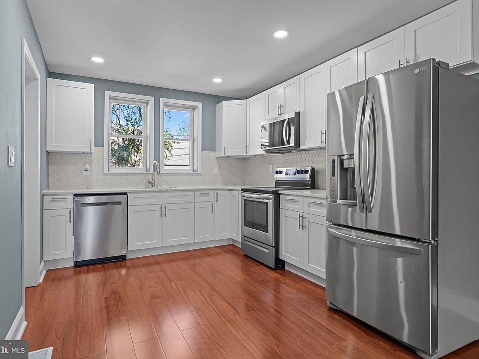 Completely Renovated Home — Everything Brand New! Beautifully redone from top to bottom featuring new hardwood floors, designer bathrooms, and a modern kitchen with shaker-style white cabinets and quartz countertops. Stylish iron railings and a finished walkout basement add extra appeal and living space. This home includes new plumbing, new electrical, new HVAC with central air, and all new windows. Located on an amazing street with a long backyard and plenty of parking. Truly move-in ready and built with quality craftsmanship throughout! Everything done with proper permits and inspections