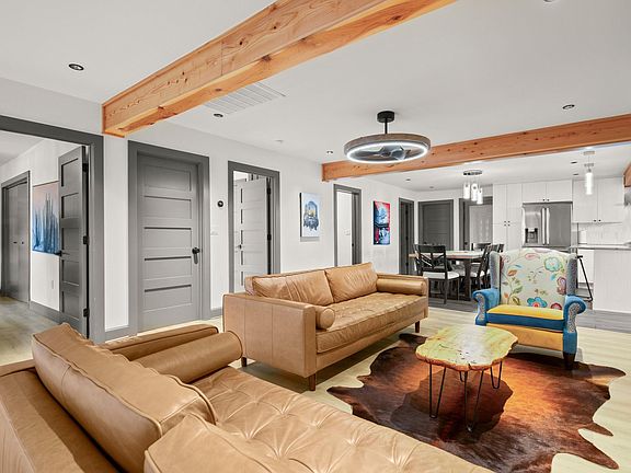 - Beamed Ceilings, Built-in Features, Ceiling Fan(s), Chandelier, Double Vanity, French Doors, Kitchen Island, Open Floorplan, Quartz Counters, Recessed Lighting, Sauna, Soaking Tub, Walk-In Closet(s)