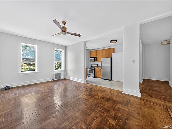 Park-facing and beautifully renovated, this pre-war one-bedroom co-op in Concourse Village captures the poetry of timeless living. Sunlight in every room bringing out the art deco character. Enter a large foyer, large open living room & renovated kitchen —stylish & serene. HUGE walk in closet with closet system built in. Ideally located near shops, restaurants & transportation— IRT B and D lines, a short commute to midtown Manhattan. Pet-friendly art deco building has expansive front and back courtyards with thoughtful plantings & bubbling fountains… perfect for relaxing after a busy day. Amenities include a part-time doorman and on-site laundry,