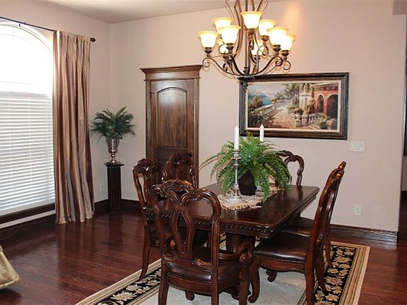 This is perhaps the finest home in the Elgin area in this price range. So many extras. It's an electrician's custom home and has more unique lighting than just about any other house around including under cabinet floor lighting in the kitchen. From the impressive entrance to a dining room with an arch tiled ceiling the home is pure elegance. On the exterior there is a gated entrance where you drive through a portico/carport and enter 2 garages from the rear..one a 2 car and the other a one car garage. There is a sprinkler system in the front and an extended covered patio area with fireplace and built-in TB with sound system. Inside there are so many extras. The living and dining areas have hardwood flooring, the only carpet is in the bedrooms. in the kitchen there is a double oven plus warming drawer. The island has a retractable microwave, the sink has a touch faucet and there is a wine chiller all topped with granite counters. The laundry room has one one two built-in ironing boards, extra cabinets, sink, pantry and a wall shelving unit that pulls away to reveal the door/entrance to the safe room. The fireplace in the great room is surrounded by stone and there is surround sound speaker system that is controlled through an audio closet. The office is currently set up as a nursery but could be converted to a fourth bedroom. The baths and most bedrooms are built to be handicapped accessible. The house is heated and cooled with geothermal heat pump system for very low utility bills. The house sits on 3/4 acre lot with a wood privacy fence backing up to a grove of trees. The cook top and fireplaces are gas, everything else is electric.