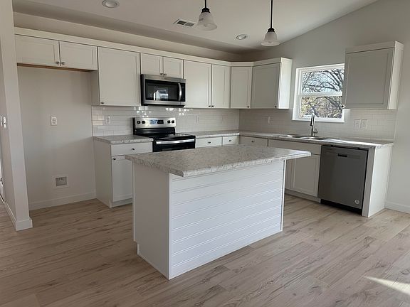 Spacious islandPlenty of cabinetsTile backsplashOpen layoutSpacious laundry room