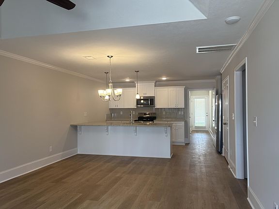 Available for immediate occupancy! New construction 2 bedroom, 2 bath townhome in Clearwater Preserve subdivision. Covered front stoop opens to open-concept floor plan with LVP flooring throughout main living area, kitchen and hallway. Living room has trey ceiling and ceiling fan; adjacent dining area with decorative lighting separates the living room and kitchen area. Kitchen with granite counters, stainless appliances, tile backsplash, breakfast bar and pantry. Door separates the living kitchen space from the hallway leading to the bedrooms/bathrooms and backyard. Primary bedroom has trey ceiling and fan. En suite bath has double sink vanity with stone counter, large walk in shower, linen closet and large walk-in closet with shoe rack. 2nd bedroom with double door closet. Hall bath with single sink vanity and tub/shower combo. Hallway off dining area leads to mud area with shoe bench and coat pegs, security system, linen closet and laundry room with cupboard and hanging shelf.