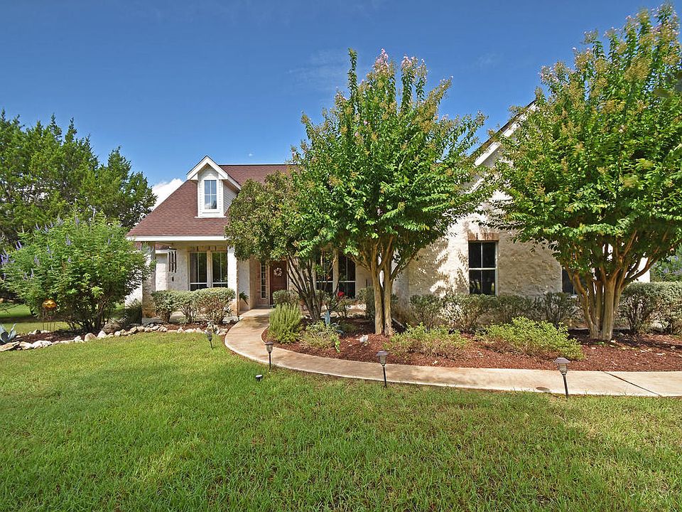 Gorgeous, single-story, custom home on approximately one acre wooded lot. Open floor plan features 4Beds or 3Beds+ Study, 2.5 baths, 2 dining, gourmet kitchen with stainless appliances, granite counters, center island, counter seating. Beautiful screened sunporch overlooks nature, numerous oak trees & a wet weather creek. Set back from the road on a quiet cul-de-sac among stunning native landscape. Lowest tax rate in the area and low utilities. Located on the school bus route to award-winning Dripping Springs' schools. Near creeks, wineries, natural swimming holes, world famous Salt Lick BBQ and Violet Crown Trail. Only 20 minutes to Downtown Austin.