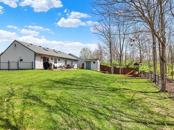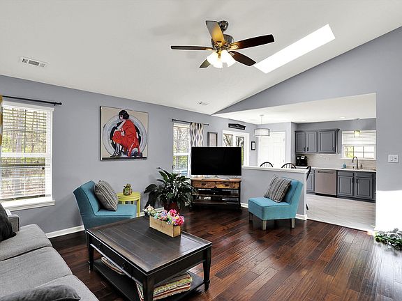 This beautifully updated 3-bed, 2-bath ranch offers 1,400 sq ft of stylish living space perfect for both relaxing & entertaining. The spacious great rm features a vaulted ceiling and skylights, flooding the space w/ natural light. The kitchen has stainless steel appliances (new refrigerator & dishwasher!) & plenty of prep space. Both bathrooms have been crisply remodeled, giving a clean, modern feel. The primary suite offers a private retreat w/ its own updated bath. Step outside to your private, fully fenced backyard that backs up to a wooded area-the perfect setting for a summer barbecue. Kids & pets will love the room to run & play. 2-car garage, a spacious patio, & a location that can't be beat - just minutes from shopping, dining, entertainment, & even a vineyard!