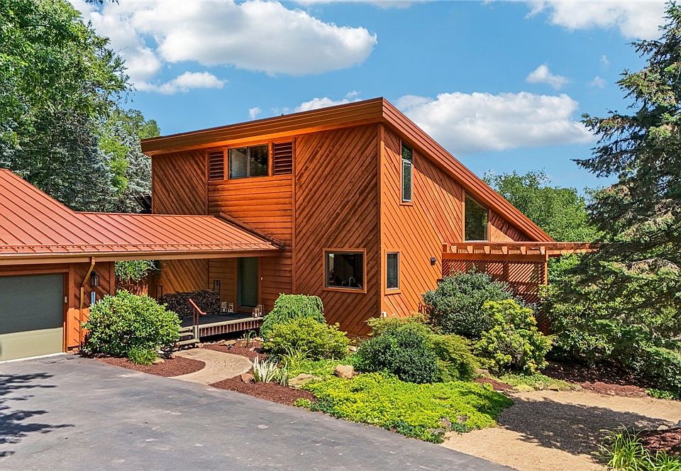 A Rare Architectural Masterpiece North of Pittsburgh. This one-of-a-kind architect-designed contemporary home showcases bold tube-and-beam architecture atop a monolithic 10" thick concrete foundation. Set on 24.8 acres of rolling countryside, it offers a seamless fusion of modernist design and natural serenity. The open layout features a brand-new custom kitchen with quartz counters, Forno appliances, and a striking 10' island. Vaulted ceilings, exposed steel beams, and corner windows flood the dramatic living space with natural light and panoramic views. A loft-style steel-and-timber design highlights the artistic vision behind every detail. Enjoy unmatched privacy and serenity, all just 24 miles north of Pittsburgh. Whether you're searching for a peaceful retreat, a creative haven, or a property with iconic design pedigree, this energy-efficient residence is a rare opportunity to own a piece of Pittsburgh’s architectural history, surrounded by stunning natural beauty.