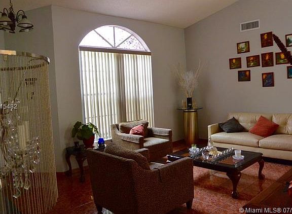 Beautiful property located in desirable LAGO MAR area!...Split bedroom giving master suite a total privacy. Open kitchen with ample family room. Formal dining and separate living area. 3 sliding doors leading to the patio adding extra lighting to all areas. Under ground custom made pond in patio. Look alike marble tile through out the house. Double garage and L-shaped patio great for entertaining. Convenient guests parking area steps away from the front of the house. Accordion shutters through out windows and doors adding an EXTRA great feature to the property. Great family oriented community, close to famous Kendall Drive street and major stores.