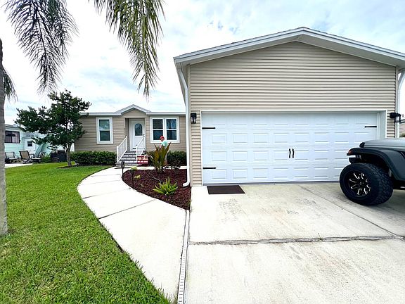 Spacious and very well-maintained, this 3 bedroom, 2 bathroom Palm Harbor Mobile home is located in the highly sought-after 55+ community of Colony Cove. Offering approximately 1,340 sq ft of living space, this home features cathedral ceilings, an open floor plan, and a desirable split-bedroom design for added privacy. The primary suite includes a large walk-in closet and ensuite, while drywall throughout and wood laminate flooring add to the home's modern appeal. The two-car attached garage includes built-in shelving, and recent updates such as a brand-new roof and A/C system in 2025 provide peace of mind for years to come. The versatile third bedroom can serve as a guest room, home office, or hobby space-whatever best suits your lifestyle. Colony Cove is a pet-friendly, resort-style community where every day feels like a vacation. Residents enjoy six heated swimming pools, five clubhouses, a private marina, riverfront pavilion with fishing pier, pickleball and tennis courts, shuffleboard, billiards, woodworking shop, two fitness centers, and dozens of clubs and activities to stay social and active. This home is priced to sell, and the seller is considering all offers. Don't miss the opportunity to enjoy everything Colony Cove has to offer! All listing information is deemed reliable but not guaranteed. Buyer should independently verify all information, including measurements, which are approximate. Lot rent subject to change. Integrity Mobile Home Sales does not guarantee or warrant the condition of the property.