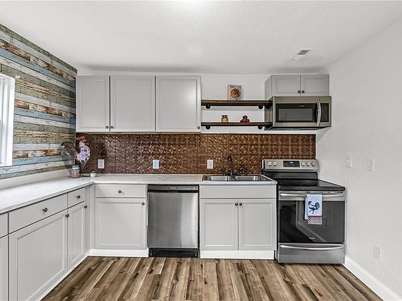 Nice-sized backyardQuiet dead-end streetStainless steel appliancesStylish backsplashNatural lightWalk-in showerUpdated cabinetry