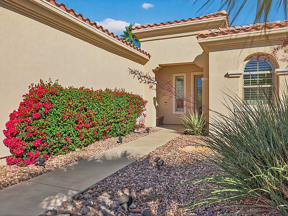 Embrace luxury living in this exquisite 55+ community of Sun City Shadow Hills, nestled on the #2 Fairway of the Championship golf course with breathtaking mountain views. This home is ready and available for a long-term lease. This turn-key, fully furnished home features two spacious ensuite bathrooms, a sleek home office with a built-in desk, and a welcoming leaded glass entry door.